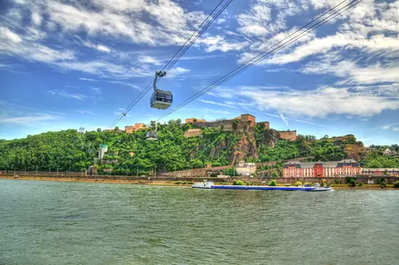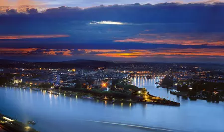 In Koblenz, wo am „Deutschen Eck“ das riesige Reiterstandbild von Kaiser Wilhelm I. über den Zusammenfluss der beiden Flüsse Mosel und Rhein wacht, kann man ganz wunderbar beobachten, wie sich ihr zumeist blassgrünes Wasser mit dem dunkelblauen Rhein vermischt. Ein einzigartiger Anblick, den man am besten von der Festung Ehrenbreitstein aus genießt.