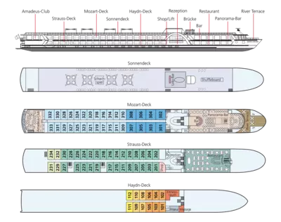 Haben wir Ihren Reiseappetit schon geweckt? Dann stillen wir ihn gern. Im herrlichen Panorama-Restaurant beispielsweise, wo Sie unsere Spitzenküche in ihrer ganzen Vielfalt erwartet. Genussreich entspannen können Sie auf unserem großzügigen Sonnendeck mit Lido-Bar. Und im ruhiger gelegenen Amadeus-Club schlagen Sie mit einem guten Buch einfach ein neues Reisekapitel auf. Wohin es Sie bei uns an Bord auch zieht, fühlen Sie sich einfach zu Hause.