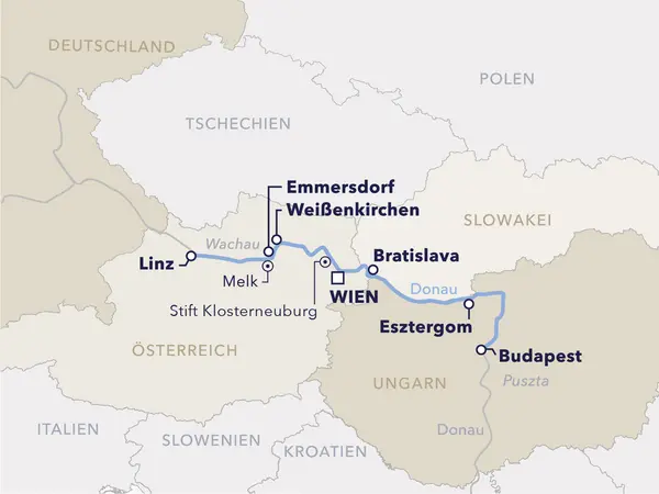Die einwöchige Smooth Jazz Festival Reise auf der luxuriösen AMADEUS Star startet und endet in der prächtigen Kaiserstadt Wien. Erleben Sie historische Städte wie Bratislava, Budapest und Linz, das UNESCO-geschützte Wachau-Tal und die Donau-Schlinge bei Visegrad. Genießen Sie lokale Spezialitäten wie Linzer Torte, Sacher Torte und österreichische Weine, und bewundern Sie beeindruckende Bauwerke wie das Stift Melk und die Basilika von Esztergom. Lassen Sie sich von der Donau mit all ihrer kaiserlichen und romantischen Pracht verzaubern. Den Tag beschließen faszinierende Live-Auftritte der besten Smooth-Jazz-Künstler in der Panorama-Lounge. Freuen Sie sich auf 9 mitreißende Konzerte, die Sie jeden Tag musikalisch begeistern werden. Und damit die Party weitergeht, erwartet Sie jeden Abend nach den Konzerten eine exklusive Aftershow-Party mit DJ.