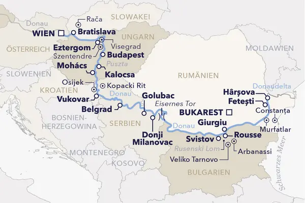 Spazieren Sie durch die prächtigen Boulevards von Wien, erkunden Sie das historische Herz von Budapest, flanieren Sie durch Bratislava und entdecken Sie das pulsierende Belgrad. Staunen Sie über die spektakuläre Schlucht des „Eisernen Tors“ in den wilden Karpaten, Europas imposanten Taldurchbruch, der Naturgewalt und Schönheit zugleich vereint. Im Donaudelta, UNESCO-Weltnaturerbe, erwartet Sie ein Bootsausflug zu einer einzigartigen Tier- und Pflanzenwelt – hautnah und unvergesslich. Mit dem Gefühl unzähliger neuer Eindrücke lassen Sie Ihre Reise auf dem Landweg nach Bukarest ausklingen – und vielleicht beginnt bereits die Vorfreude auf Ihr nächstes Abenteuer mit uns.