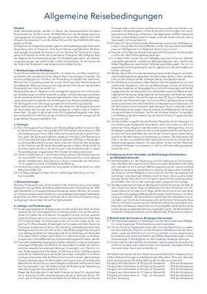 Im Folgenden wird dieser „Veranstalter“ genannt. Die Reisebedingungen finden somit Anwendung, wenn ein Programm unter diesem Namen ange boten wird. Die in diesem Katalog enthaltenen Bedingungen sind weder ein Angebot noch ein Vertrag. Der Transport von Passagieren und Gepäck auf einem der angebo tenen Passagierschiffe erfolgt auf Basis der allgemeinen Transportbe dingun gen. Für Flugleistungen gelten die Beför- derungsbedingungen der ausführenden Luftfahrtunternehmen, für Bahnreisen die der Deutschen Bahn oder entsprechend anderer Bahnen.