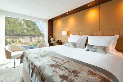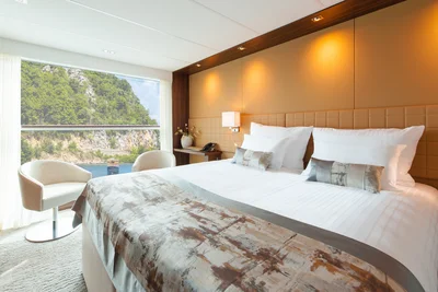 12 Suiten mit genug Platz für Königinnen laden zum wonnigen Wohlfühlen ein – ob draußen auf dem begehbaren Balkon oder drinnen in der gemütlichen Leseecke. Unsere 69 Kabinen baden geradezu im Sonnenlicht – großteils durch automatisch absenkbare Panorama-Fensterfronten. Und wenn es Ihnen mal zu warm wird, regeln Sie das ganz bequem über Ihre Klimaanlage. Oder Sie nehmen eine erfrischende Auszeit im luxuriösen Badezimmer. Doch es geht noch größer: Die Krönung an Bord ist unser herrlicher Indoor-Pool, dessen Dach wir bei schönem Wetter einfach für Sie öffnen können. Himmlisch sind auch die Kinovorführungen, Veranstaltungen und Vorträge, die wir Ihnen in diesem Bereich präsentieren. Haben wir Ihren Reisetraum geadelt?